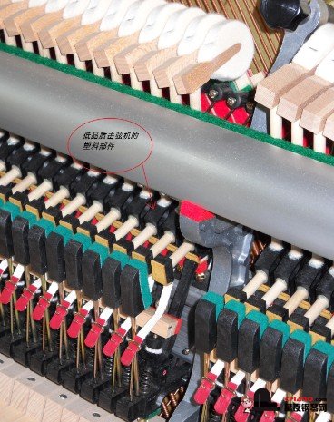 2,一定要全木部件的擊弦機,現今的高科技,木部件的加工精度可以達到千分之一英寸,任何 替代品都是無法和全木部件的高品質相比的。現在有很多廠家都使用了ABS或STYRAN塑料,而且大部分的代替代部件的顏色會是白色,灰色和黑色,少數廠家也把顏色仿成木色。對于仿木色的 塑料部件,通過手觸摸法便可以分辨,木做的部件,手感“溫暖”,能觸覺到紋理變化,塑料部件摸上去有“涼”的感覺,并且“滑”手。