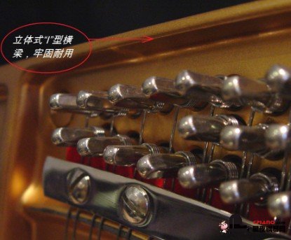 4,立體“I”式橫梁鐵架,高質量的鐵架要直、要粗大,因為它至少要承受42000磅琴弦的拉力,立體“I”式橫梁牢固,有效減少鋼琴過大走音,能持久保持調琴后的穩定周期,方便調律。仿“I”型橫梁鐵架一般偏薄、細小,頂上會多增另一橫梁加固,非一體化處理,品質較低。