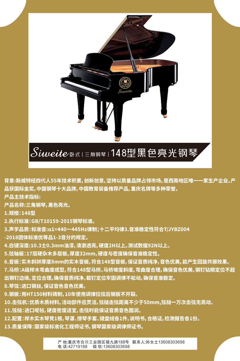 臥式(三角鋼琴)148型黑色亮光鋼琴