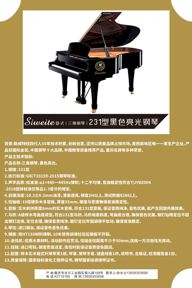 臥式(三角鋼琴)231型黑色亮光鋼琴